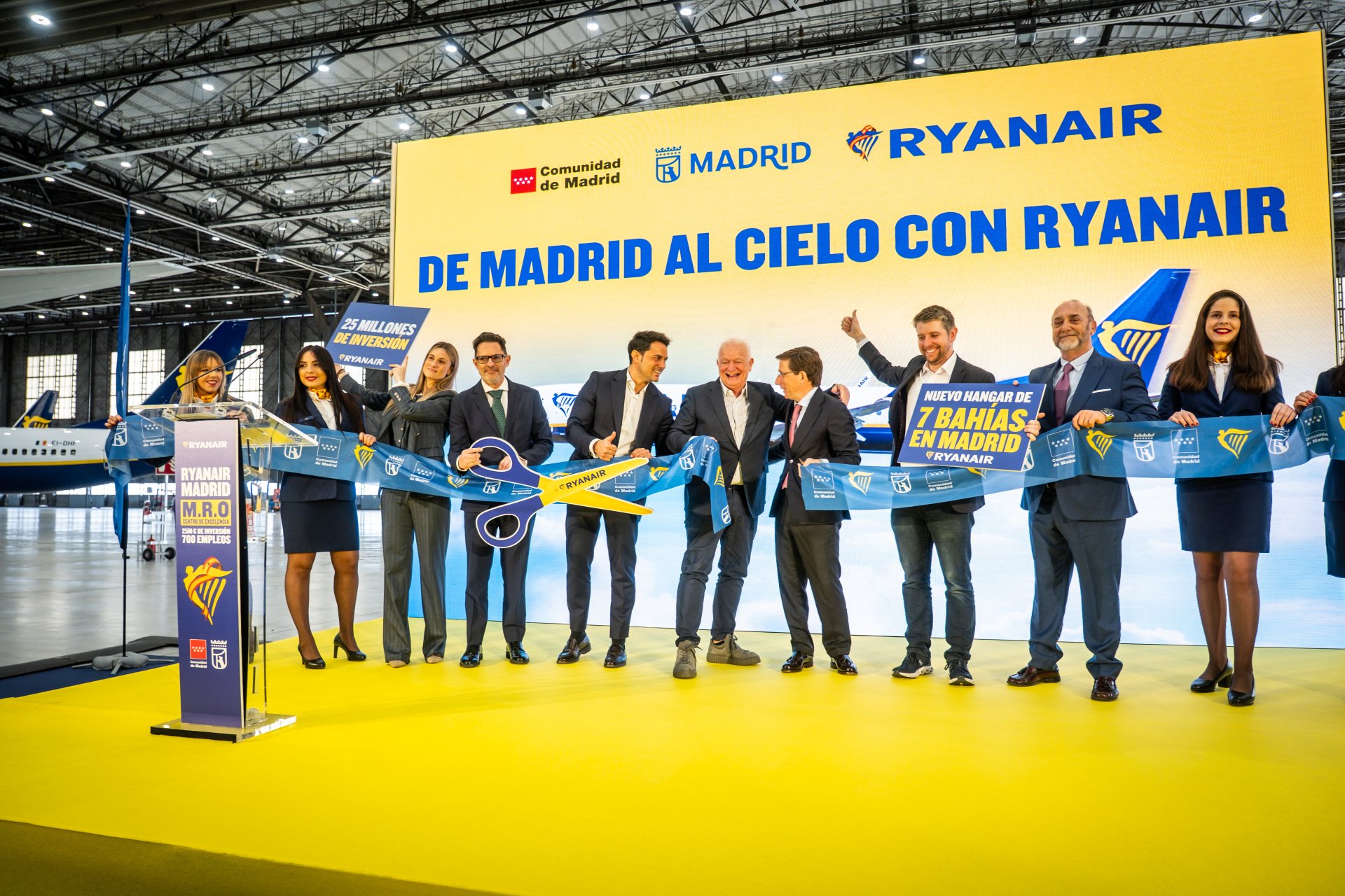 I also collaborate with the International Communications team at Ryanair, supporting the organization of events that announce new routes, base openings, and key company developments. Recently, I worked closely on a major event held in Madrid to mark the opening of a new hangar. For this project, I was responsible for designing all presentation backdrops for Eddie Wilson, as well as overseeing the visual setup of the space, including the installation of large-scale props.